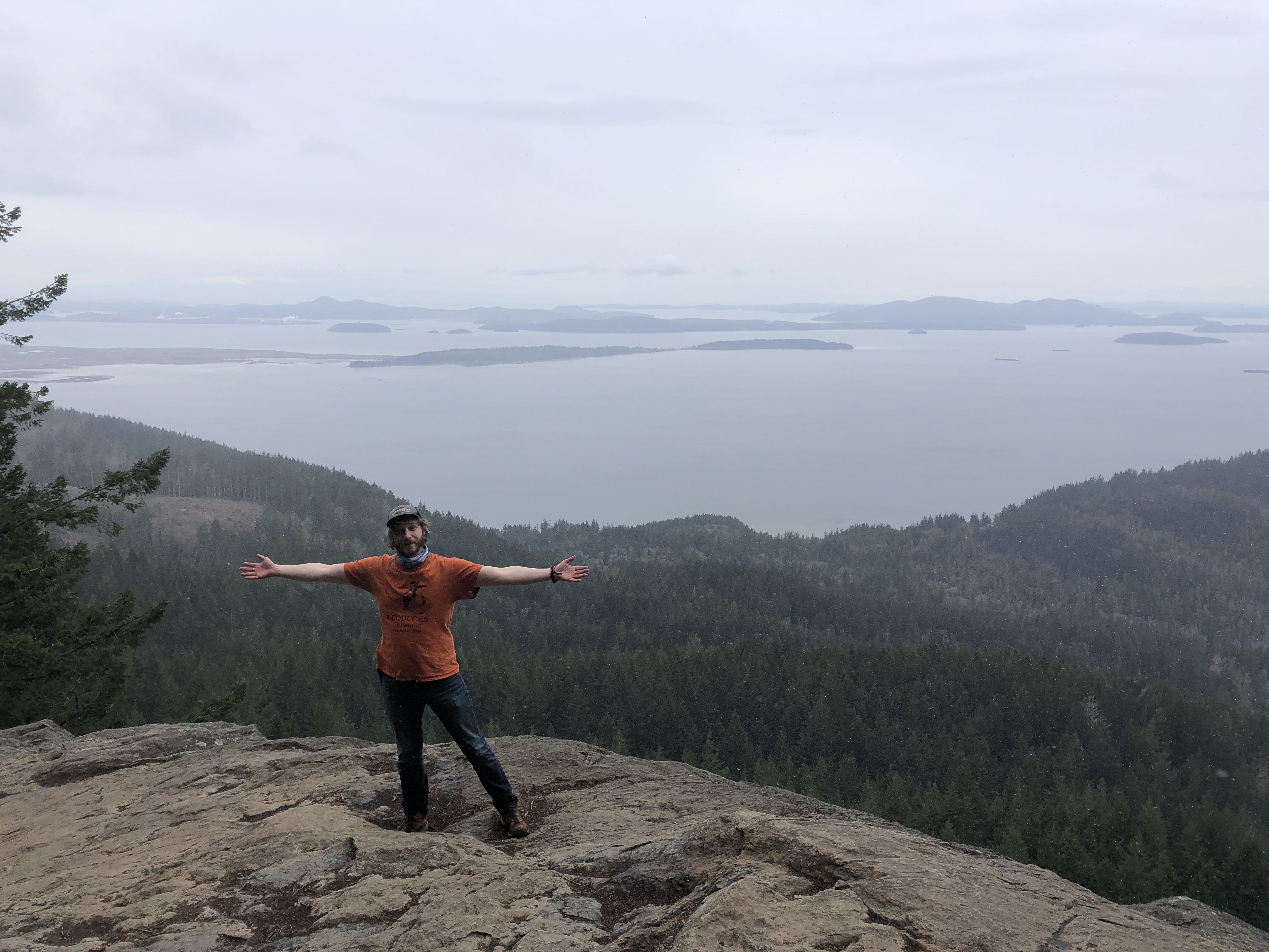 Lilly Lizard Lake Loop was our first backpacking trip of the season! [Our 4th ever together.] It was a great warm up hike to remind our bodies what it is like to work a little harder than lifting holiday cocktails and swiping up on TikTok. There were a few other people on the trail, but we were the only ones who camped that night. As we walked up to the campsites, an eagle flew over the lake and it was magic. We went fishing both that night and the next morning. Gav caught a couple small trout that he threw back. And I caught my very first fish ever the next morning!!! Which was also small and put back – but truly exciting nevertheless. Our hike out we took a different route so we could head up to Oyster Dome [which I learned is where paragliders launch themselves!!!] a beautiful overlook of the San Juan Islands – and that was with a bit of snowfall. I can only imagine what it looks like on a clear day. Keep scrolling for more specific details on the hike and backpacking experience.